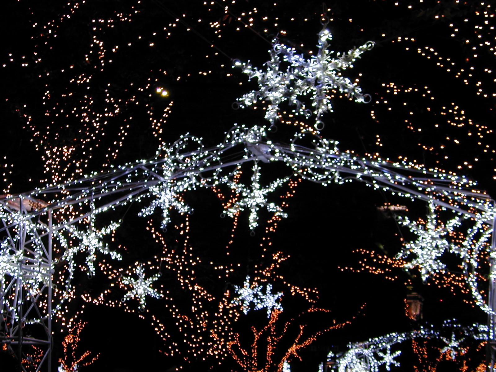 ルミナリエにリベンジに行こうと思っていたのですが、 リベンジどころか、返す刀で返り討ちに逢う、 と言う可能性の方が高いので、 ここは1つ別の所を、と言う事で交通費も安くつく、 大阪・中之島のイルミネーションを撮ろうかな、 と言う事で、こちらに変更、 移り気なのは、ぼくのもっとも得意とする所。 早い話、節操が無いだけの事。 着いた途端に三脚が逝かれました、 パン棒が取れてしまって、まあ締めなけりゃいいだけで、 いつも締めてないから、まあいいかという事で、 ただ、締まってないので抜ければカメラは落下試験、 と言う事になるので、 手をネックストラップにズ〜と通していました。 今日は寒かった!!! メモリーの交換も電池の交換も、手がかじかんで出来ない。 メモリーの交換だけでも 1分位掛かってたんでは無いだろうか。 20時15分の時点で、水がうっすらと有る所は凍り付いてた。 おかしいなと思って、足でこすって(?)みたんだけど、 ジャリジャリという感触、勿論 固まりも。 手がゆうこときかないので早々に退散、惨敗です。 ルミナリエは256MB撮ったけれど、今回は140MB位、 先の20時15分で打ち切り、 帰りにツリー型のが大阪市役所前にあったので、 それを三脚出すのも邪魔くさいので手持ちで撮影。 人には三脚必須と言ってるんだけど 1/8だったんで数打ちゃ当たるだろうという 軽〜い考えです。 地下街へ入った時は幸せ一杯だった。 体はだんだん温まってくるし、ね〜ちゃんは綺麗だ(笑) ルミナリエでなく、こちらできっちり 返す刀で返り討ちに、あわされました(泣) 一応、色々不備がありますが、上げておきます。 ブレ、ピンぼけと、格好悪いのばかりなので、 期間終わればルミナリエ共々、削除しますのでご容赦を。 さて本題です。 ここは三脚は必須です! 携帯カイロ(寒いので体と手を暖める用) 白の手袋(カメラを操作出来るのなら暖かい手袋がいい) 三脚についてはシャッタースピード遅いのと、 寒さの為、構図を固定するため、 三脚使う条件が揃い過ぎています。 また、動画もいいと思います。 ぼくのカメラは動画撮れないんで涙を飲みましたが、 イルミネーションの色がルミナリエのように固定でなく、 色を変化させます。それがまた綺麗です。 ですから、 静止画では色の変化に対応できないことも数知れず。 4段目、5段目は色が変化している時に撮ってるものです。 (大阪・中之島2005_12_17_385 387 388) (大阪・中之島2005_12_17_390 392 393)の2組 構図は同じなのですが、露出が違うと思います。 ピントと露出は同時に行うカメラなんで、 ピンあった時に露出決まっています。 それですので、ピンあわせた時、露出決まって、 色が変化すると、 ピンあわせた所の明かりは無いという事も有ります。 だからピンぼけ、露出不良が見受けられると思います。 一応 たたき台という事なので、ハネないで出しています。 その辺はご了解下さい。 この時の撮影は、連射でした、 連射と言っても秒何駒じゃなく、ただ連続で撮ってるだけ、 何も考えずに、ただシャッター押せる状態になれば シャッター押すという感じかな。 それに ぼくのカメラ連射は効きませんから。 | |