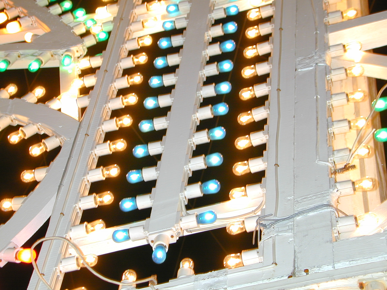神戸ルミナリエに最初の土曜日に行ってきました。 JR元町から現場まで1時間半位、 ただ歩いて立ち止まって待つだけ、何もありません。 人が多いので駅から迂回に迂回を重ねさせ、 人が一時に入らないようにする為の対策のようです。 遊水池の代わりが道路、水の代わりが人間と言うところ(笑) こんなんなら来なきゃよかったと何回も思いました。 人は多いけど、それなりには撮れたように思います。 場内放送は、混み合いますので写真は撮らないように、 と流し続けていましたが、 撮る所は場所さえ見つければ三脚立てても 別に問題ないような感じでした。 それに皆さん、携帯電話のカメラで撮っているので、 カメラで撮っても別に違和感はないです。 通行の邪魔は邪魔ですが、 赤信号みんなで渡れば怖くない、式の感じです。 横向いて歩いている人、写真撮りながら歩いている人に、 ぶつかられる事を覚悟すれば問題はないかな? それより、おっさん、おじん、肩車して歩くなよ、 邪魔やし、危ないやないか(笑) こんな事書いてるの、 ルミナリエの事務局に聞こえたら怒られそう。 たばこ吸う人は携帯灰皿お忘れ無く、 と言うようなスペースも有りました。 最初はその付近で170MB程撮りました。 其処で三宮へ行く道ガードマンの人に聞くと、 広場でやってると言うじゃあ〜りませんか。 後、64MBしかメモリーは残ってないし、 今までのを消すには数が多いし、 ダメならもう一度来たる、と言う気になりました。 行かれる方は情報収集、確かだと思いますので 大丈夫とは思いますが、 メモリーは半分は残しておいてね、と言う感じです。 光の回廊を抜けると広場に到着します。 広場(会場かな)もそう混雑してるという事もなく、 人の整理は着くまで待たされた分、 きっちりしてると思います。 現に頑丈な三脚に、びっくりする程小さなカメラ載せて、 (デジカメでしたが、残念ながら、ぼくはレスしてるくせに カメラの事は知りませんのであしからず) 撮っる人がおられました。 (綺麗な彼女連れたアベックでした、彼女色々手伝ってました) うらやまし〜、アンナ彼女 ぼくも欲しい〜〜〜。 三脚は使わないで夜景綺麗に撮りたいという人の多い中、 こんな人もおられるんだなと感心していました。 下記の条件でシャッター切れるのでいいかな、と言う訳で、 一脚は持って行ったんですが、一回も使わなかったです。 持ってこなけりゃ よかったと思った位です。 使用カメラは、ご存じの方は常識程度に知っている。 ぼくはデジカメは、これしか持ってないんです(笑) NIKON Coolpix950 200万画素 1999年製 もう6年前のデジカメです、 今も現役バリバリです。 カメラ詳細 基本的なマニュアルでの設定は ISO 80 絞り 解放 or 1〜2段絞って、 画質モード(圧縮率) FINE(約1/4) 測光方式 スポット測光 露出補正 気が向いたら +−1の範囲内で ただシャッタースピードとの兼ね合いでやめる事も。 絞り優先AE スピードライト Off そのような設定で シャッタースピードは 1/30〜60 で切れているのが多かったようです 中に 1/125 1/15と言うのもあったようです。 人が多かったのは事実ですが、レンズ部が回転するので、 今回は手を挙げて撮ったのも沢山あります。 また、下から仰いで撮るのに、寝っころがら無くても カメラをお腹の位置に置いても、うまくいくし、 スイバルがこんなに便利なものだとは思いませんでした。 これから行かれる方の参考にはなりませんが、 露出の たたき台に使って貰えれば幸いです。 色を忠実にと言うなら一番最初の写真かな? (ルミナリエ2005_12_10_020) 他のは多かれ少なかれ露出オーバーです。 ぼくは 一番最初の色は余り好きでないので、 あえて思い切った露出補正はしませんでした。 それがいいのか悪いかは、 個人の考え方により違うと思います。 一部 露出を変えただけのも載せましたので、 ご参考まで。 (ここはサムネールですのでクリックして頂くと大きくなります。 Exifデーターだけなら、この写真でも出ます。) |